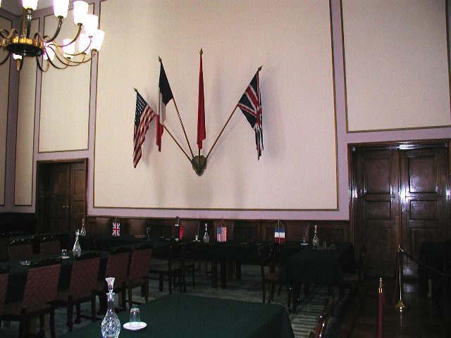 Deutsch-Russisches Museum Berlin-Karlshorst Nachdem am 7. Mai 1945 in Reims im Hauptquartier von General Eisenhower, die Kapitulation mit einer ersten Unterzeichnung vollzogen wurde, ratifizierten in diesem Saal in der Nacht vom 8. zum 9. Mai Generalfeldmarschall Keitel, Generaladmiral von Friedeburg und Generaloberst Stumpf mit ihren Unterschriften die bedingungslose Kapitulation. Die Unterschriften nahmen Marschall Shukow als sowjetischer Oberkommandierender und der britische Air-Marschal und Stellvertreter Eisenhowers Sir Arthur Tedder für das westliche Hauptquartier entgegen, dazu als Zeugen der amerikanische General Spaatz und der französische General de Lattre de Tassigny.