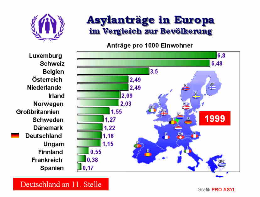 Die Grafik enthält eine Auswahl der europäischen Länder. Es fehlt z.B. Liechtenstein, das statistisch mit 16,25 Asylanträgen an der Spitze steht.