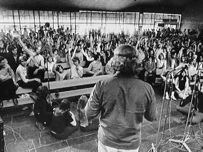 Es wurde zu einer Kollekte für die gemeinsame Agape am Abend aufgerufen. Sie erbrachte etwa 750,- DM,, knapp 150,-DM - mehr als benötigt wurde. Aufgrund von Vorschlägen aus der Gemeinde entschied man sich in gemeinsamer Abstimmung für eine zweite Kollekte und die Aufteilung des Ergebnisses von weiteren 450,- DM (!) zu gleichen Teilen für ein Heim körperbehinderter Kinder im Taunus und für die Katastrophenhilfe in Ostpakistan.